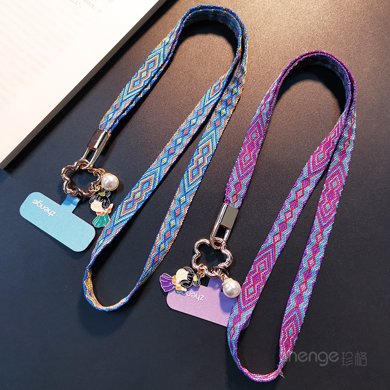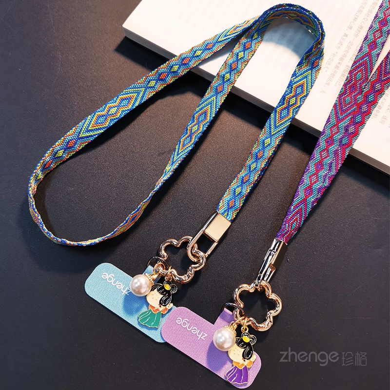 虹客手机挂绳挂脖长款原创古风招财仕女挂件不勒宽版编织吊绳防丢钥匙扣工牌证件户外旅游行防掉摔挂脖绳新品