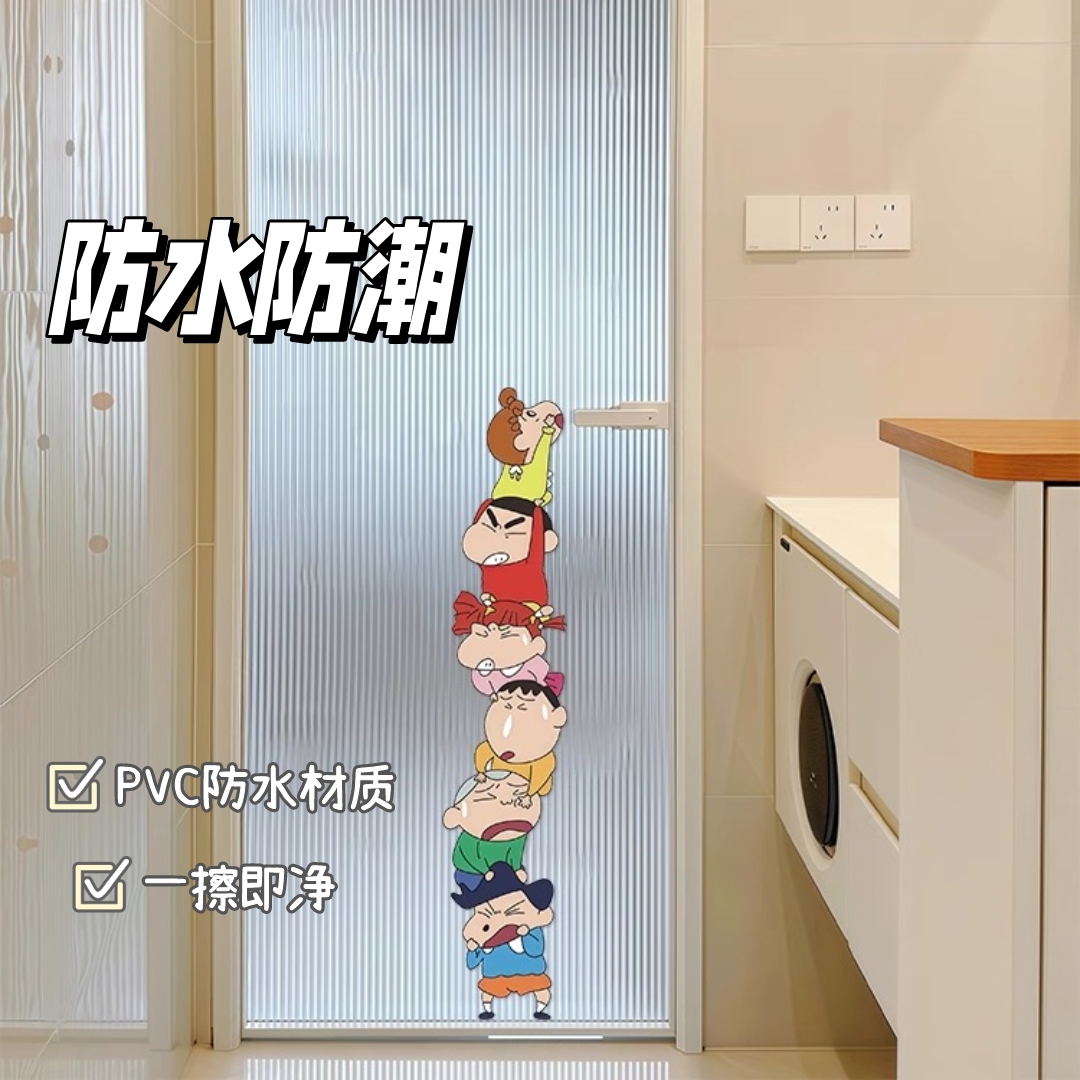 蜡笔小新浴室门贴纸卫生间玻璃门贴画装饰卡通防水墙贴瓷砖遮丑贴