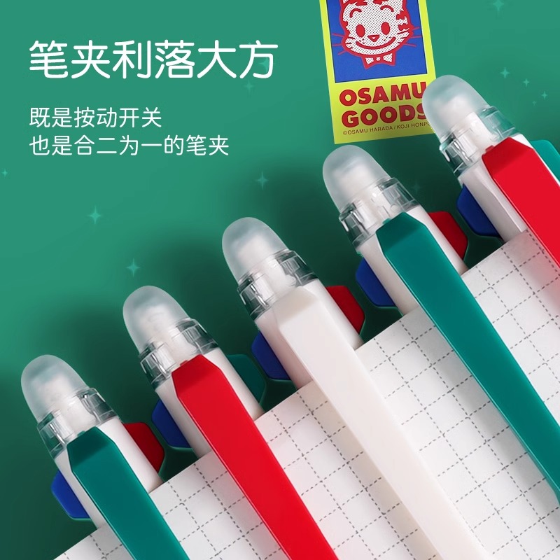 晨光4色热可擦中性笔0.5mm子弹头按动4色合一笔记神器摩易擦可擦学生水笔原田治联名创意多功能彩色多色笔