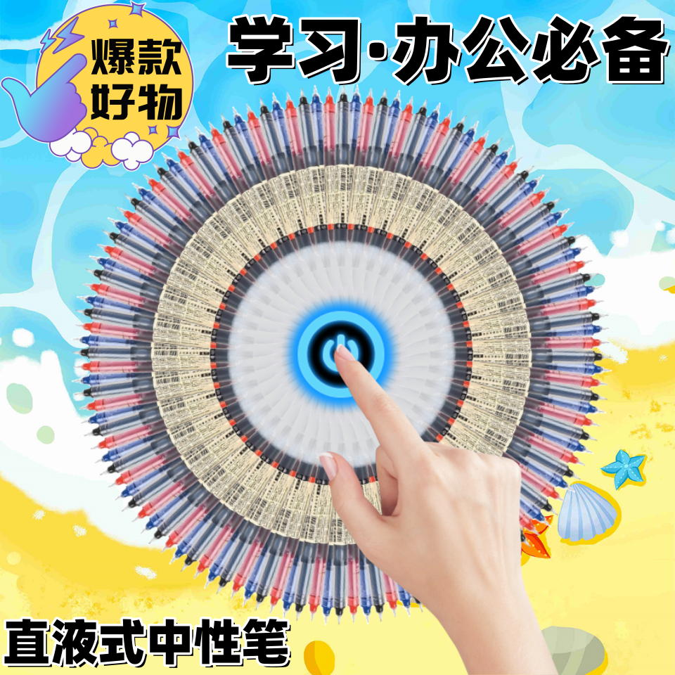 ST刷题笔高颜值按动中性笔圆珠笔黑色水笔小学生专用考试0.5速干碳素笔水性黑笔按压式做笔记签字笔非按斤卖
