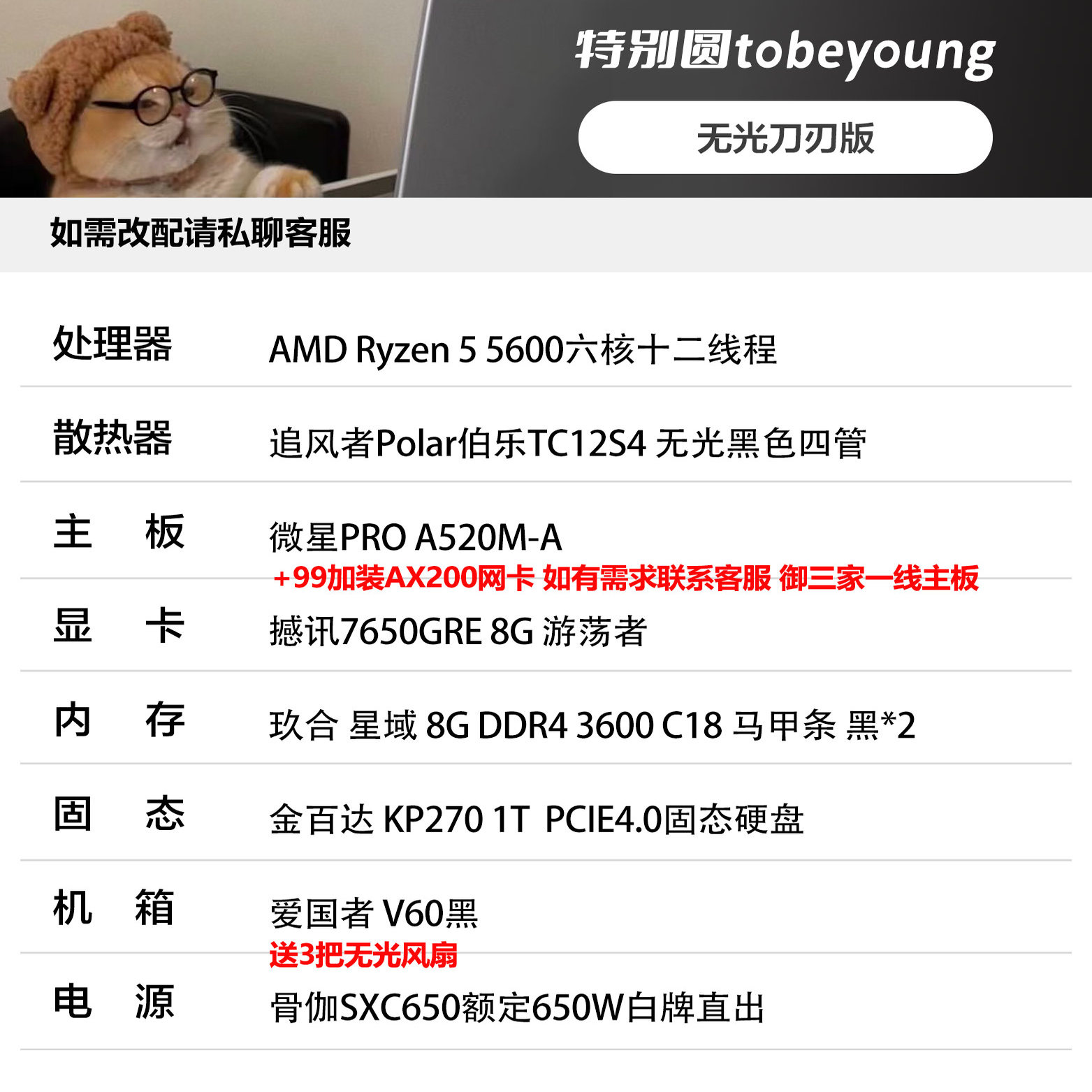 4000元神机配置 R5 5600 RX7650GRE DIY游戏主机电脑