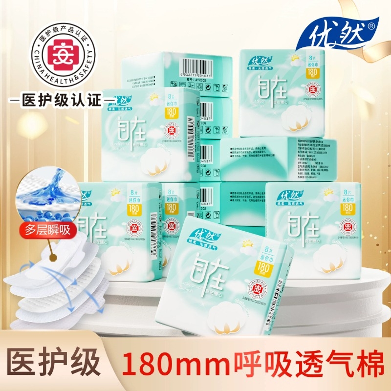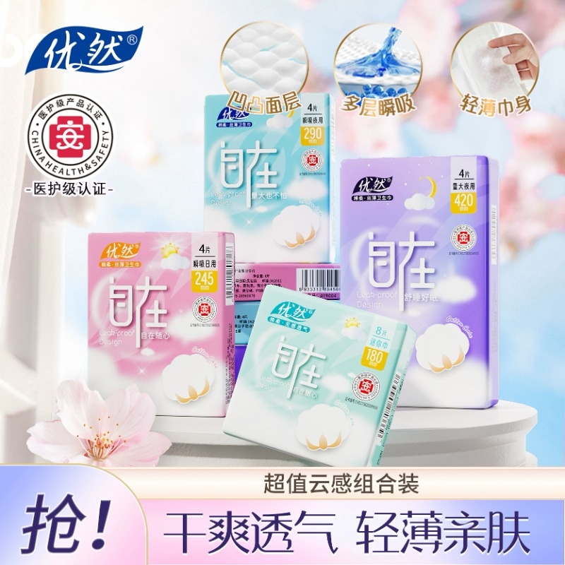 优然医护级卫生巾棉柔超薄组合日夜透气加长学生亲肤姨妈巾420mm