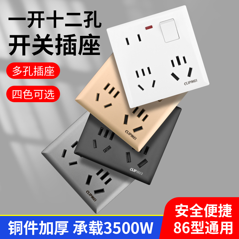 86型暗装一开八孔带灯16a开关4孔五六孔十二孔12孔插座超薄二三插