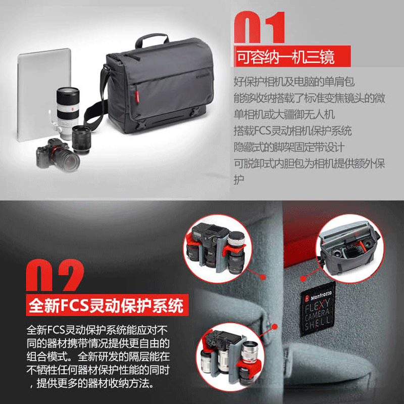 【自营】曼富图/Manfrotto 曼哈顿系列MB MN-M-SD-10/30单反相机微单镜头保护摄影单肩包多功能曼富图摄影包
