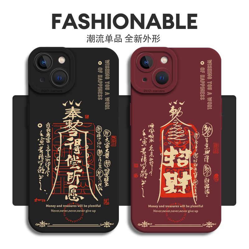招财手机壳适用苹果16新中式iphone15promax国风14plus得偿所愿13mini发财12好运11新年8书法7高级感xs蛇年xr