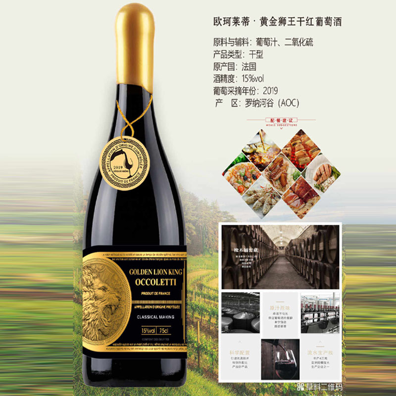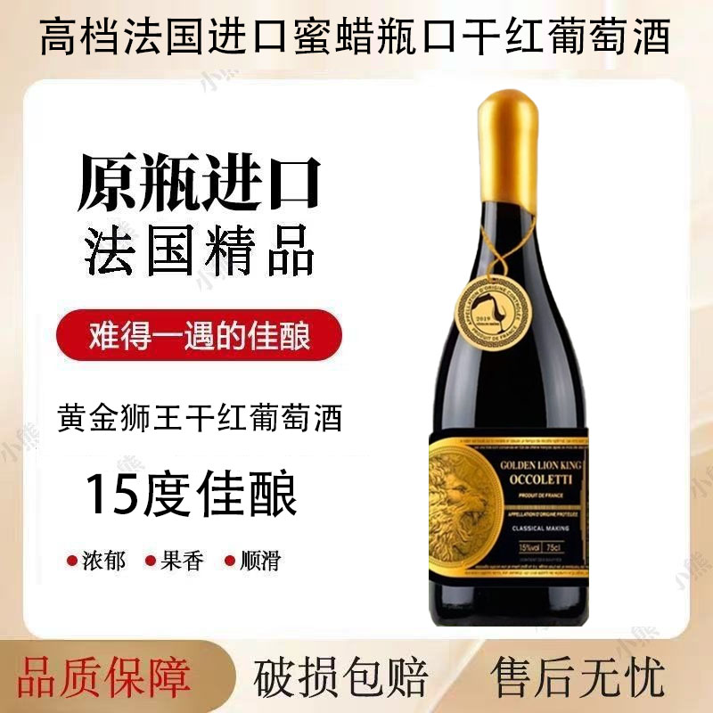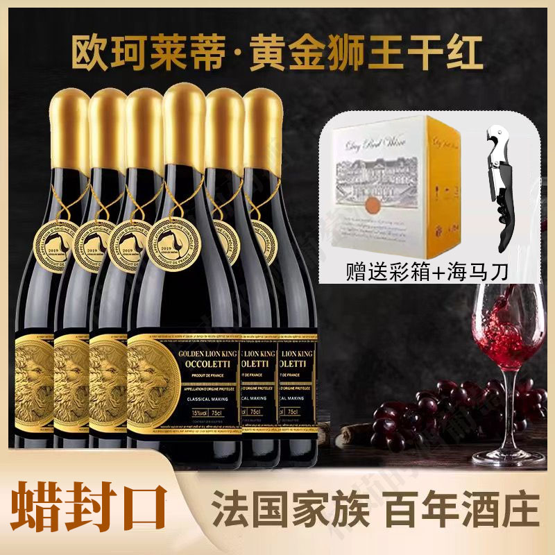 蜜蜡红酒法国原瓶进口15度黄金狮王干红葡萄酒整箱国产半甜赤霞珠