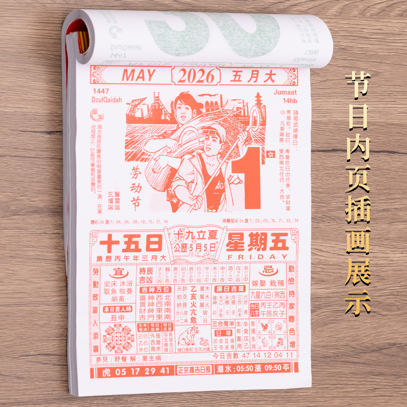日历2026年新款手撕特大号蛇年大本老黄历挂历家用挂墙传统黄历老式万年历壁挂式年历每天一页老皇历彩色养生