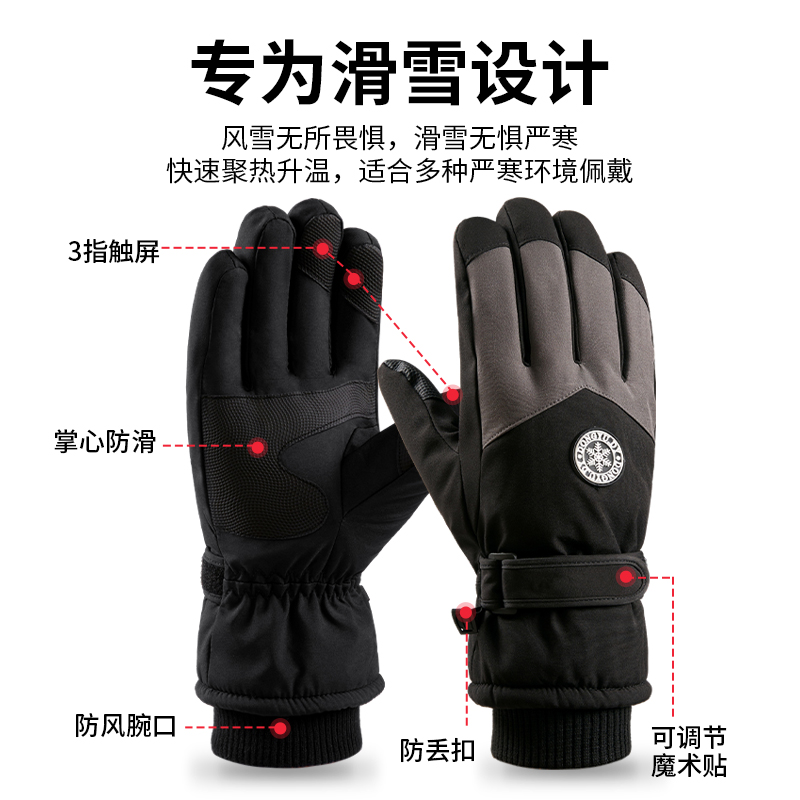 男女同款滑雪手套触屏摩托车冬加绒保暖加厚骑行防风户外防雨防水