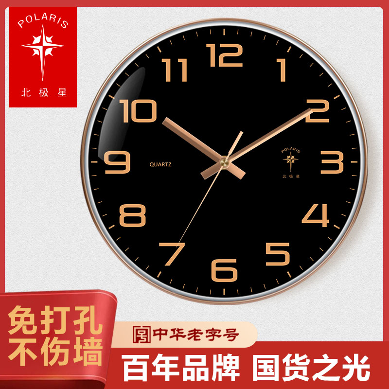 北极星家用钟表挂钟客厅轻奢时钟现代简约挂墙免打孔表大气静音