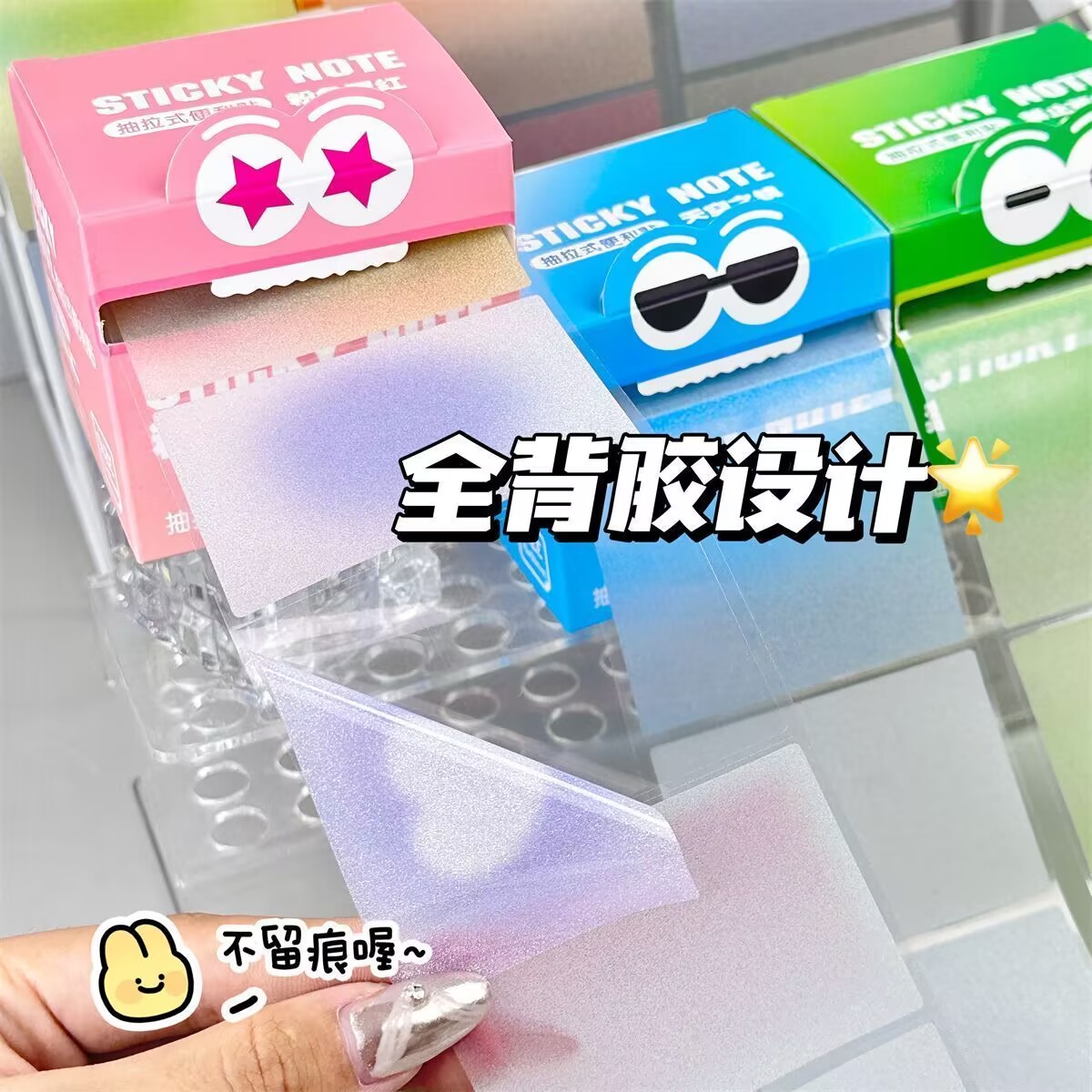新款抽拉式透明便利贴可抽拉高颜值ins风珠光材质透明有粘性不留痕学生学习记事贴纸便签本索引贴标识分类贴