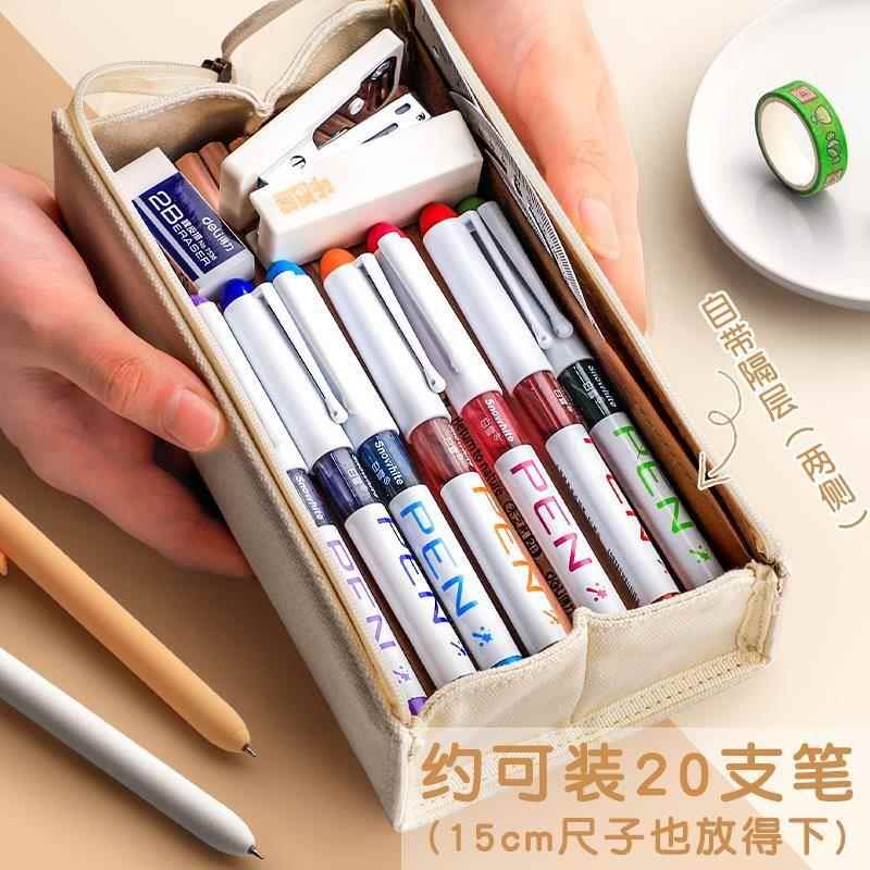 日系小众笔袋女孩文具铅笔盒初中ins风大容量可站立对开式男生小学生文具盒简约笔盒高颜值笔袋女生2025新款