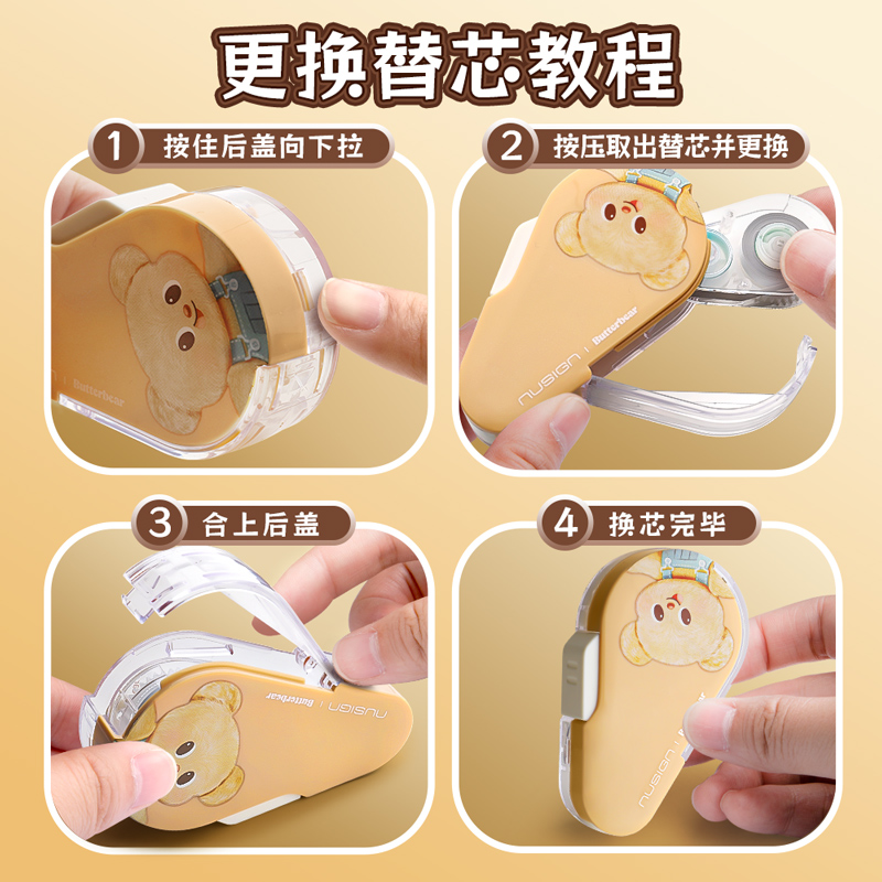 【得力黄油小熊】修正带小学生专用初中生涂改带改正带修正贴可替