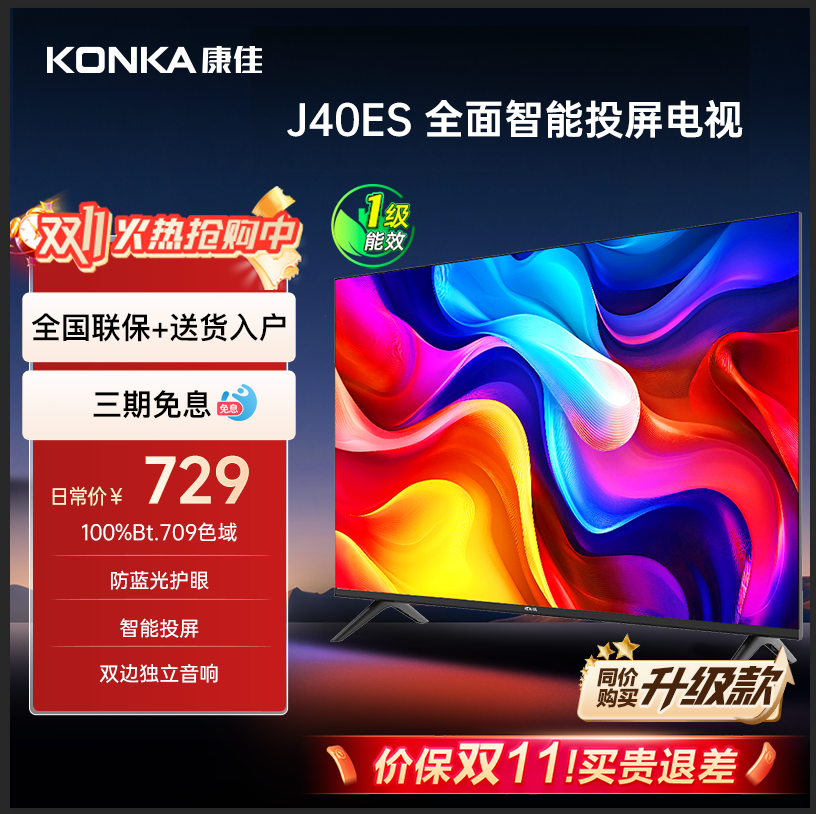 康佳旗舰店40英寸高清智能网络液晶家用全面屏konka小电视机J40ES