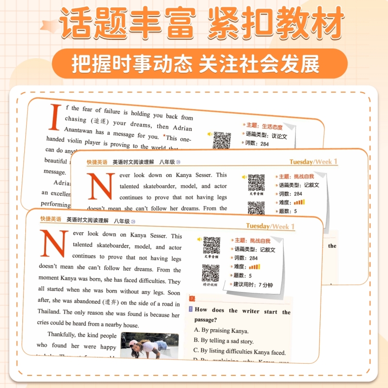 快捷英语时文阅读2026初中完形填空与阅读理解专项训练中考版七八九年级初一初二初三上下册传统文化29期28练习英文短文时事高效