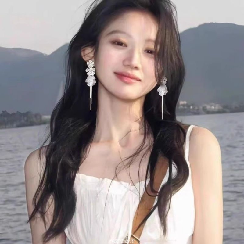 锆石花朵贝壳海边度假风流苏长款耳环女方圆脸耳饰2025新款高级感