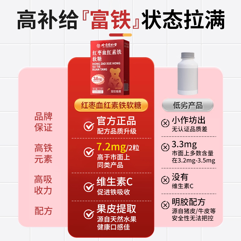 富铁软糖补铁补血贫血软糖孕妇女性儿童营养红枣血红素剂旗舰店