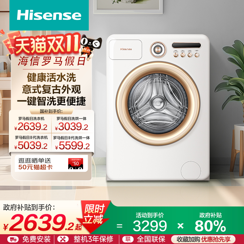海信罗马假日10公斤滚筒洗衣机全自动健康专利活水洗脱一体机R4