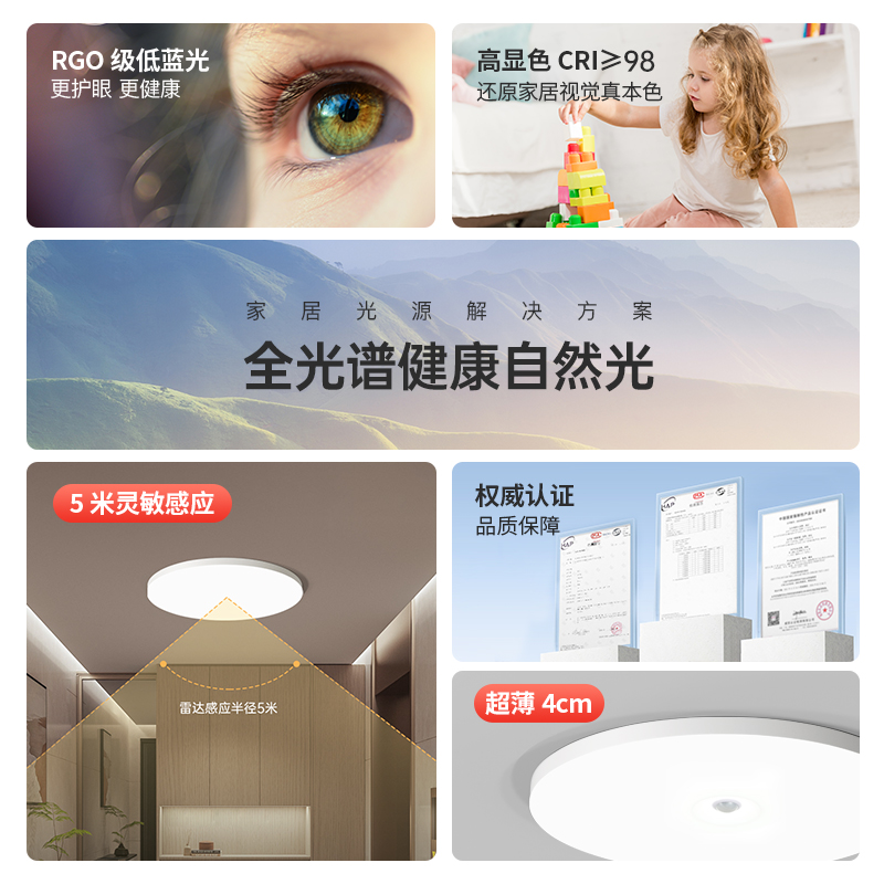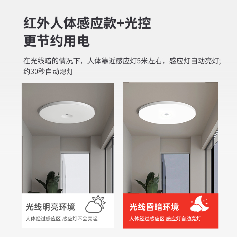 长虹照明感应吸顶灯楼梯过道走廊灯红外人体雷达感应灯智能声控灯