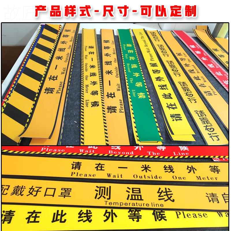 银行医院一米线地贴排队警示线测温线标志请在黄线外等候标识请在此一米线外等候标志抗污耐磨易清洁地贴