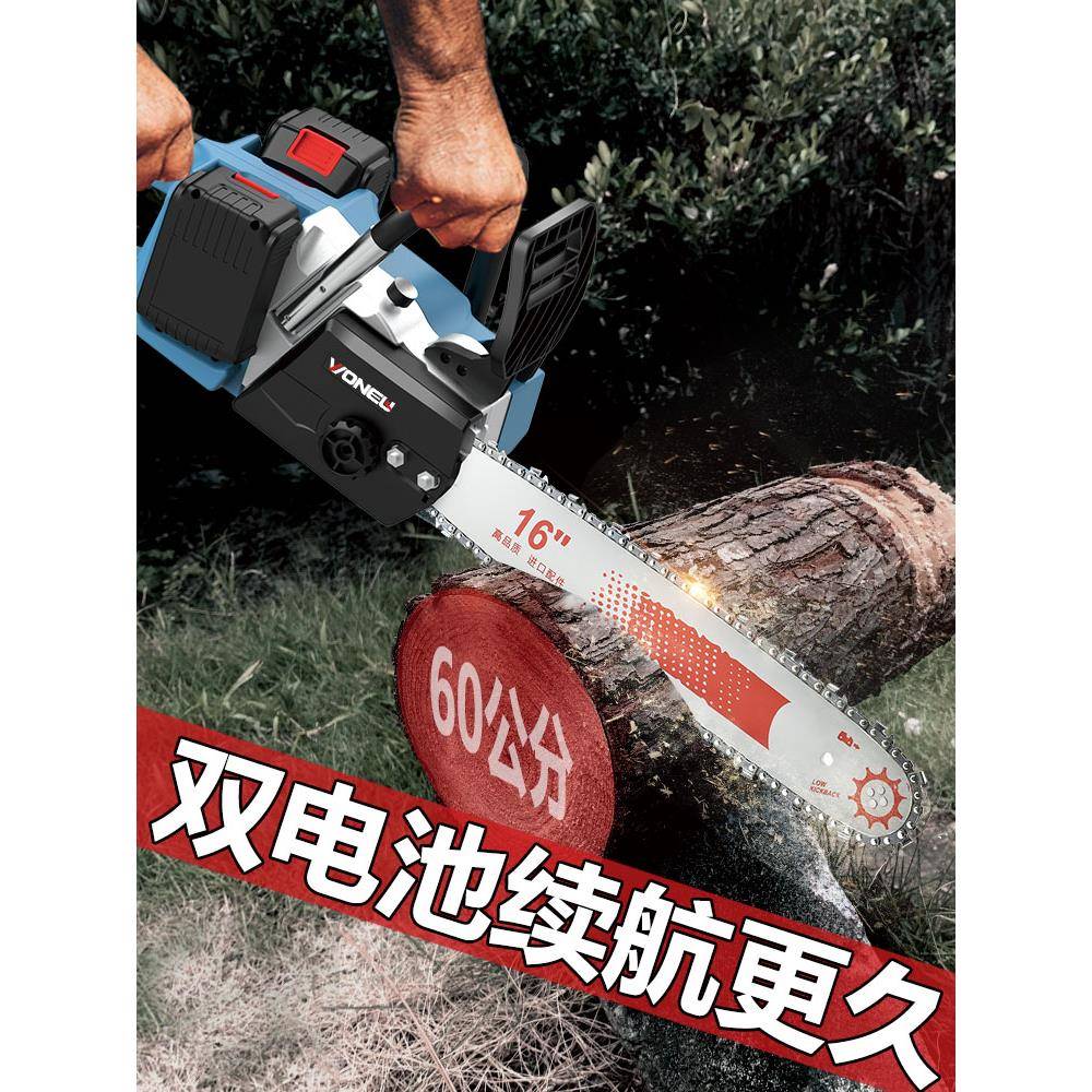 充kt电式电锯大率锂电电锯家用小638链型手持户外锯柴砍树伐木锯功神
