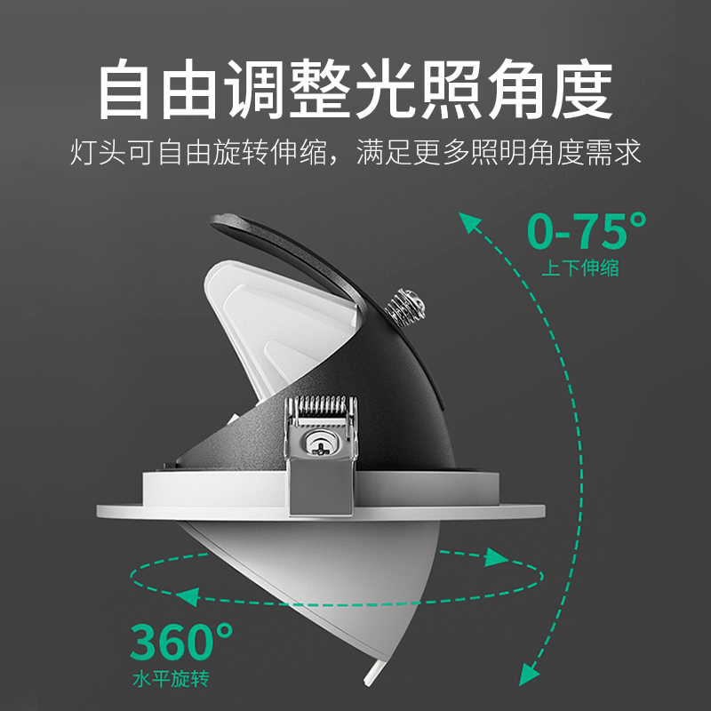 象鼻灯射灯嵌入式筒灯ledcob天花灯店铺商用家用客厅可调角度开孔