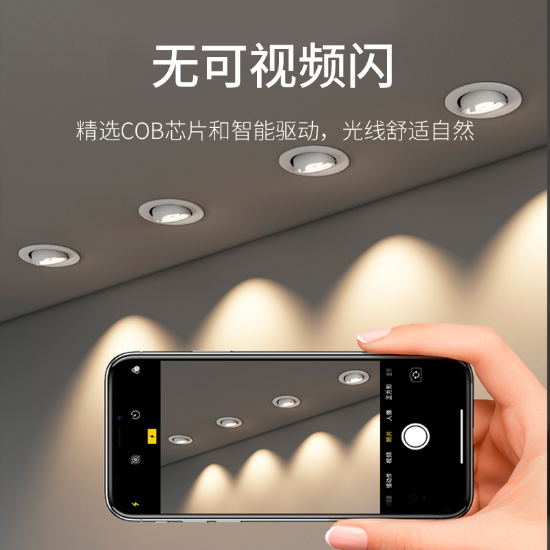 射灯LED天花灯小山丘嵌入式超亮家用COB筒灯7W可调商用聚光孔灯