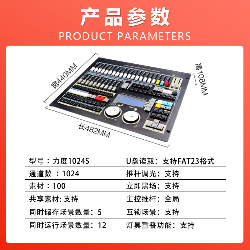 力度1024S控台舞台灯光调光台中文帕灯酒吧灯光特效切换台控制器