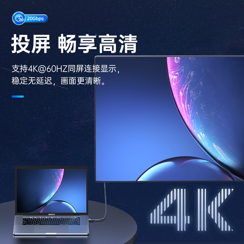 ORICO/奥睿科双typec数据线全功能100W快充4k投屏20gbps公对公usb3.2Gen2连扩展坞移动硬盘0.5/1/2/3米