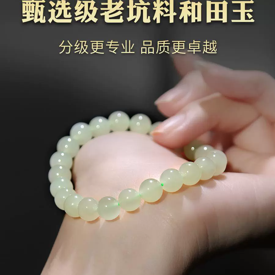 收藏级新疆晴水和田玉珠子散珠天然正品浅冰晴单珠配珠手串配饰
