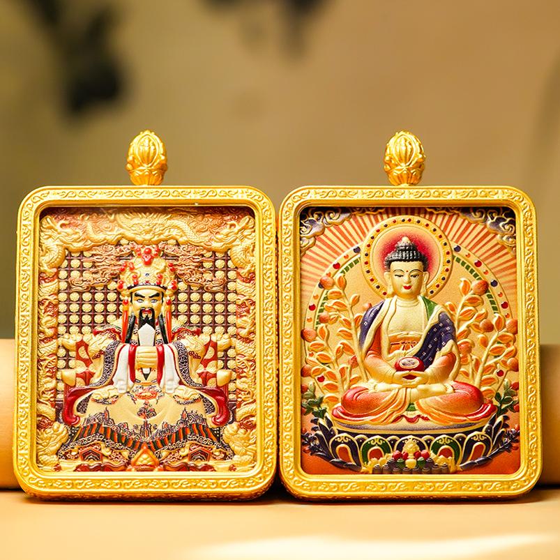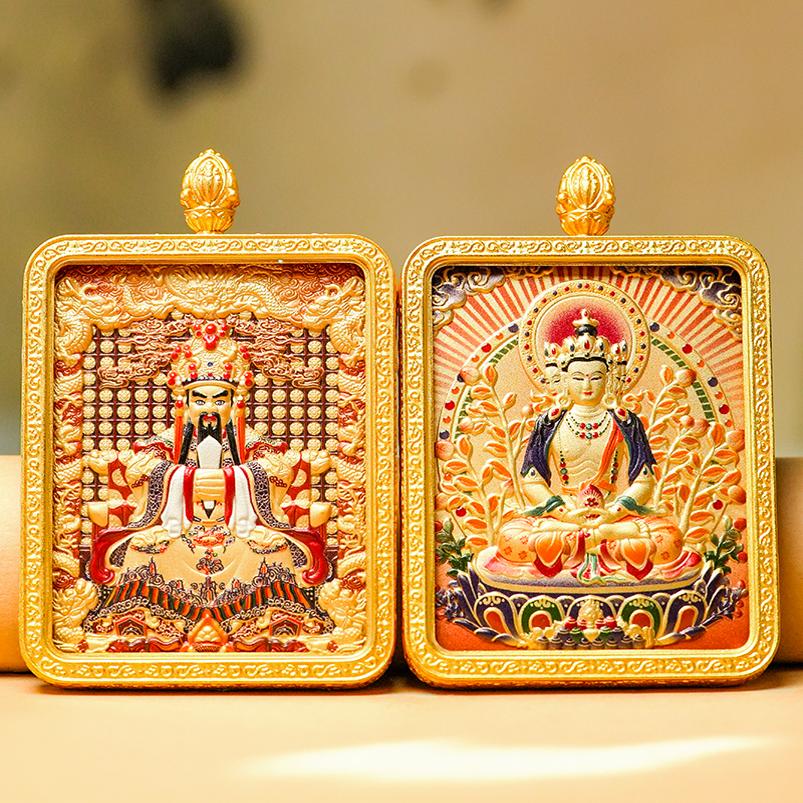 国潮唐卡八大本命佛唐卡吊坠双面彩绘五爷唐卡招财转运十二生肖