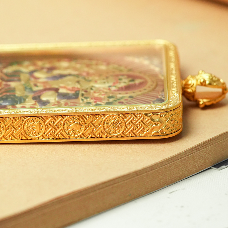 龙五爷唐卡吊坠五台s文殊菩萨手绘饰品双面立体十二生肖项链包邮