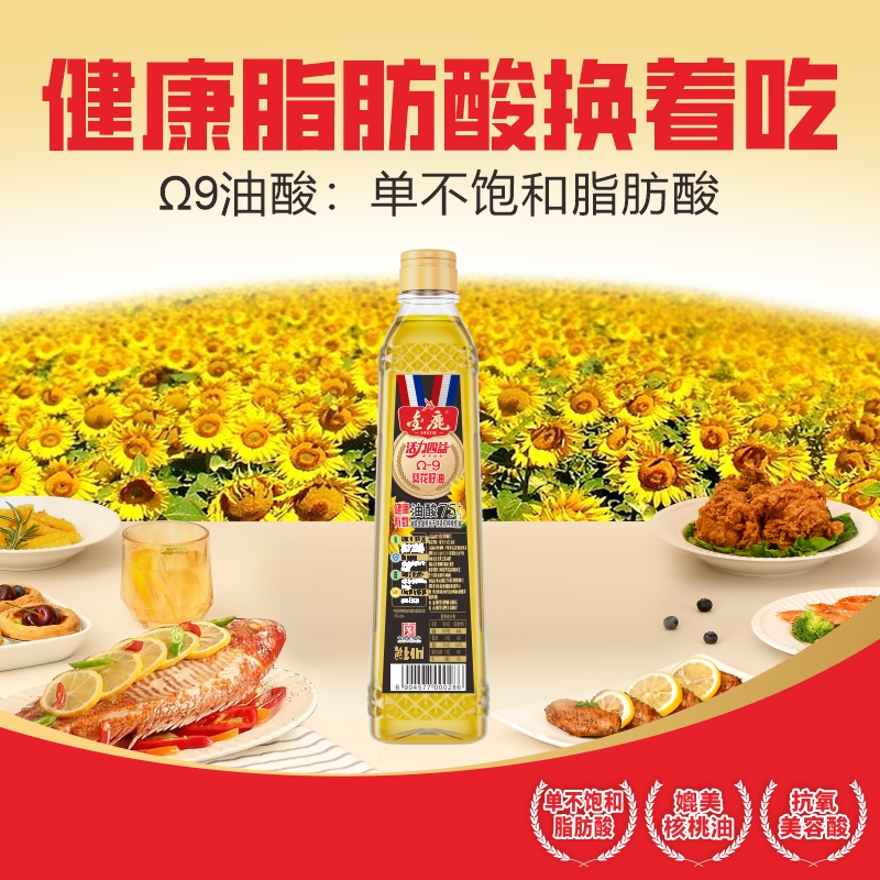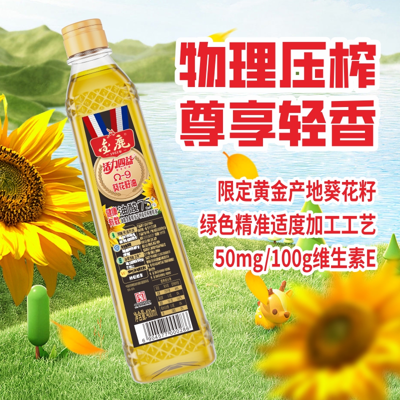 金鹿Ω9葵花籽油400ml高油酸75%内蒙古物理压榨官方正品小瓶装