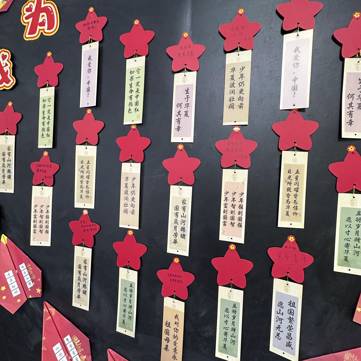 班级教室国庆节装饰布置吊卡祝福祖国爱国主题文字书签学生用红色文化祈愿墙小学生手写留言心愿卡创意黑板报