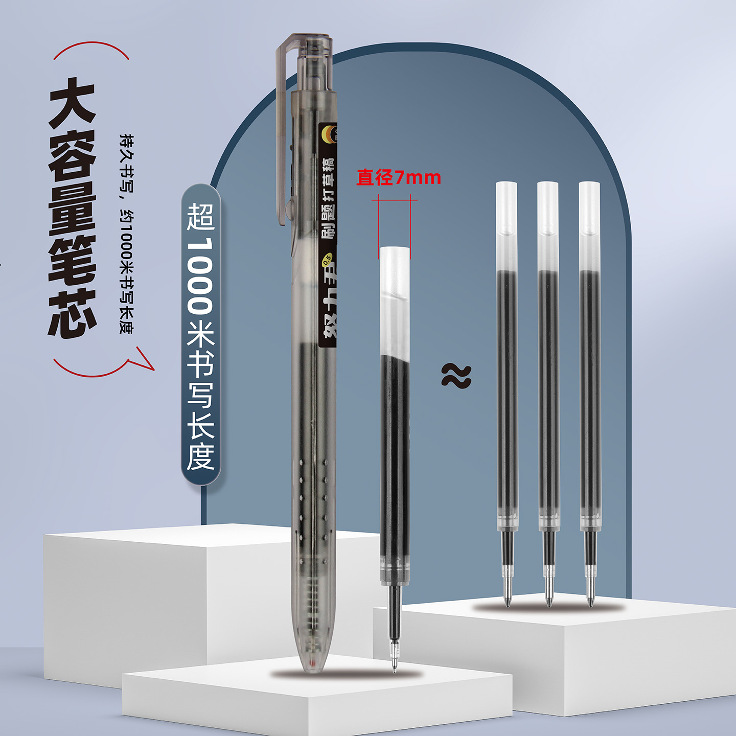 名马按动中性笔水笔碳素黑签字笔学生用水性蓝笔商务办公考试刷题老师专用红笔圆珠笔墨蓝笔芯医生处方笔黑笔