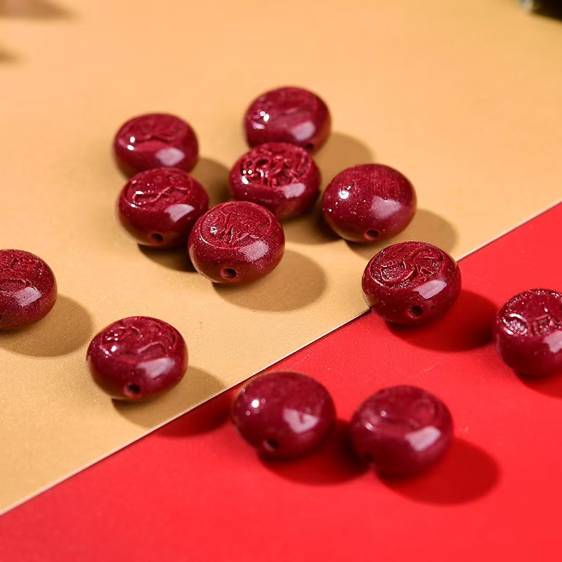 天然真朱砂十二生肖散珠配饰紫金砂红砂大孔手链配珠DIY三合六合