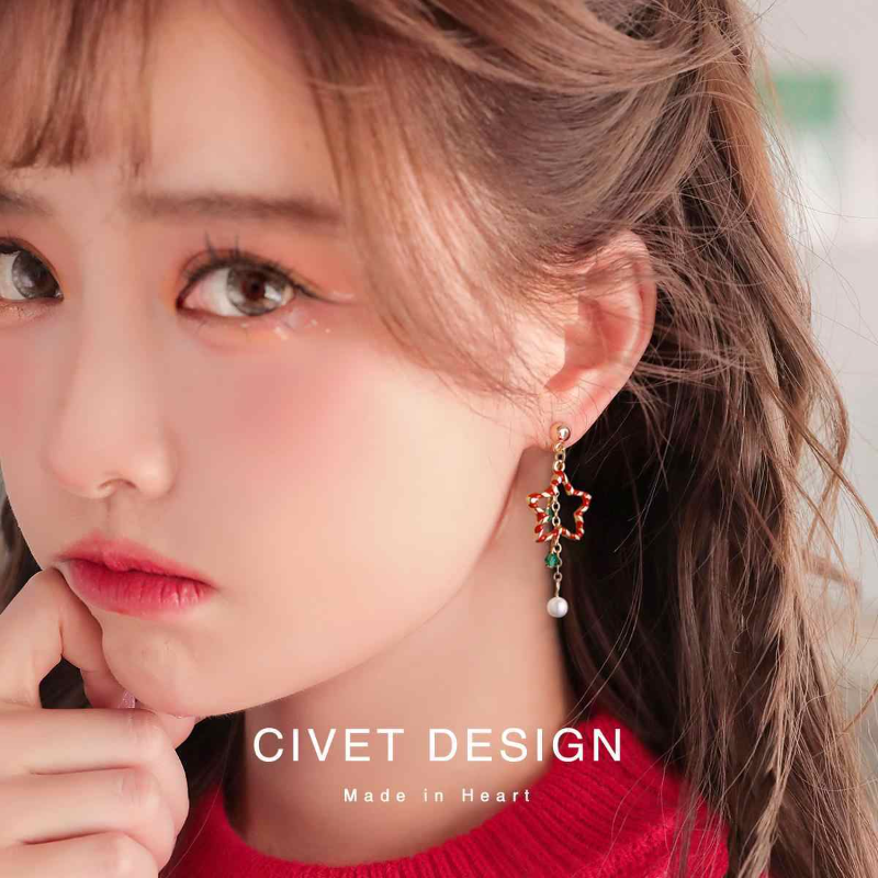 原创五角星流苏圣诞节耳环秋冬可爱甜美耳钉百搭气质无耳洞耳夹女