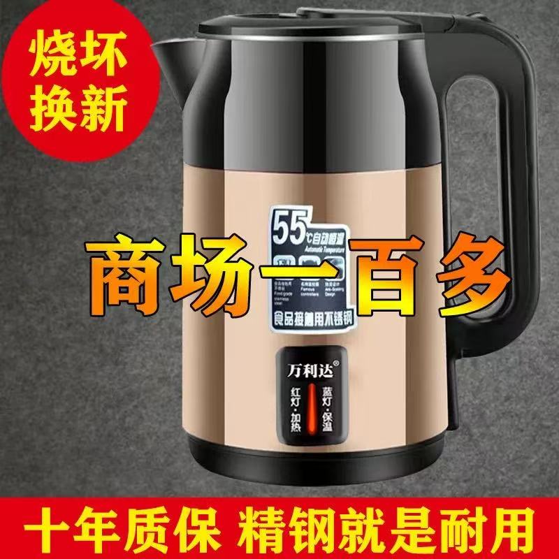 正品万利达304烧水壶家用热水壶双层大容量自动断电保温电热恒温