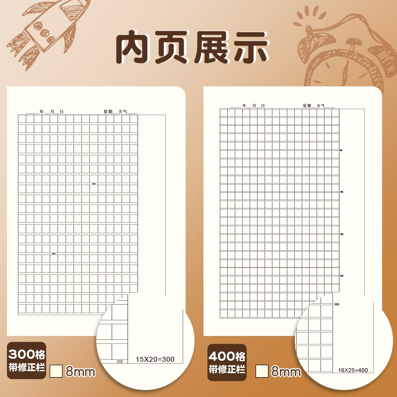 16k作文本300格大号小学生专用三年级400格作业本牛皮纸统一标准款四五年级三到六初中生方格语文作文练习簿