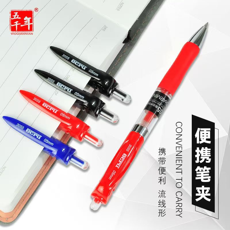 五千年0.5mm按动中性笔子弹头黑色红色办公签字笔学生经典水性笔