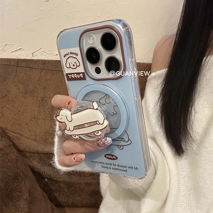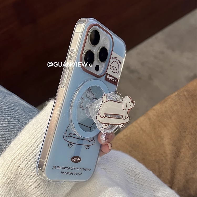 guanview ins可爱简约滑板车腊肠狗狗磁吸支架16适用iphone17promax苹果16pro手机壳15pro插卡套14软13防摔套