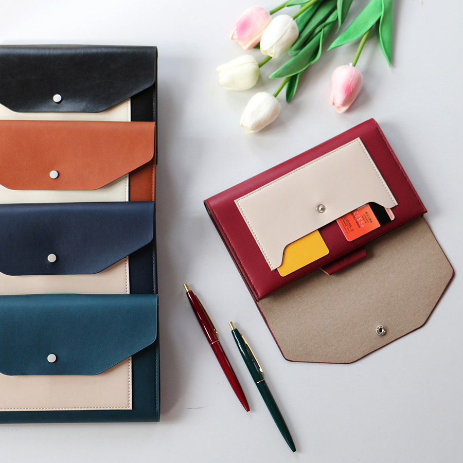 ins简约复古商务拼色PU封套多功能笔记本计划本随行手帐证件卡套