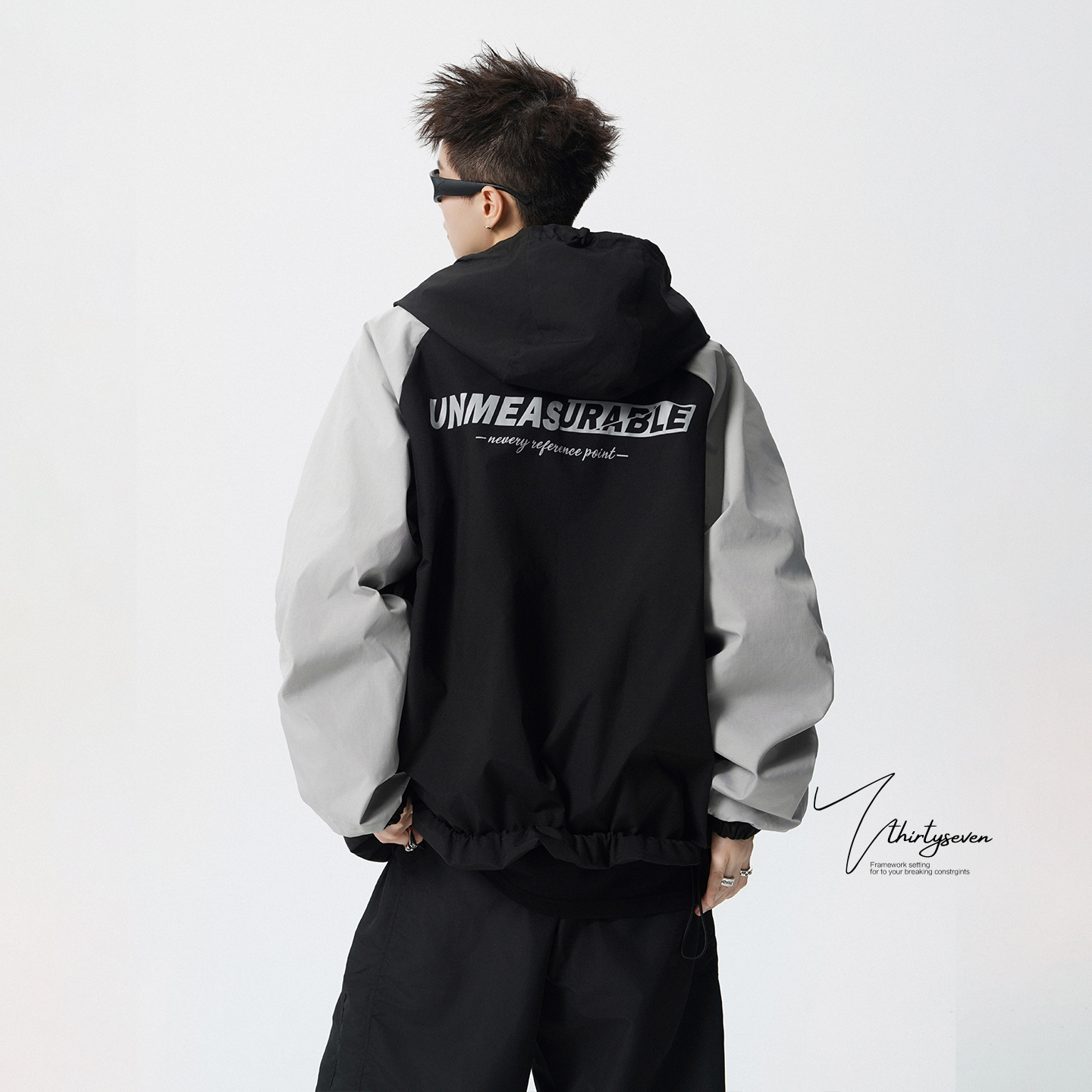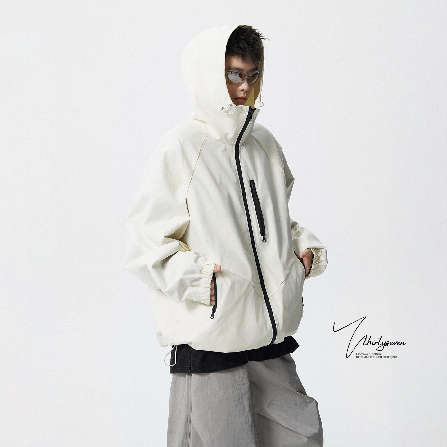 户外山系机能冲锋衣男秋潮牌痞帅宽松连帽夹克外套防水防风登山服