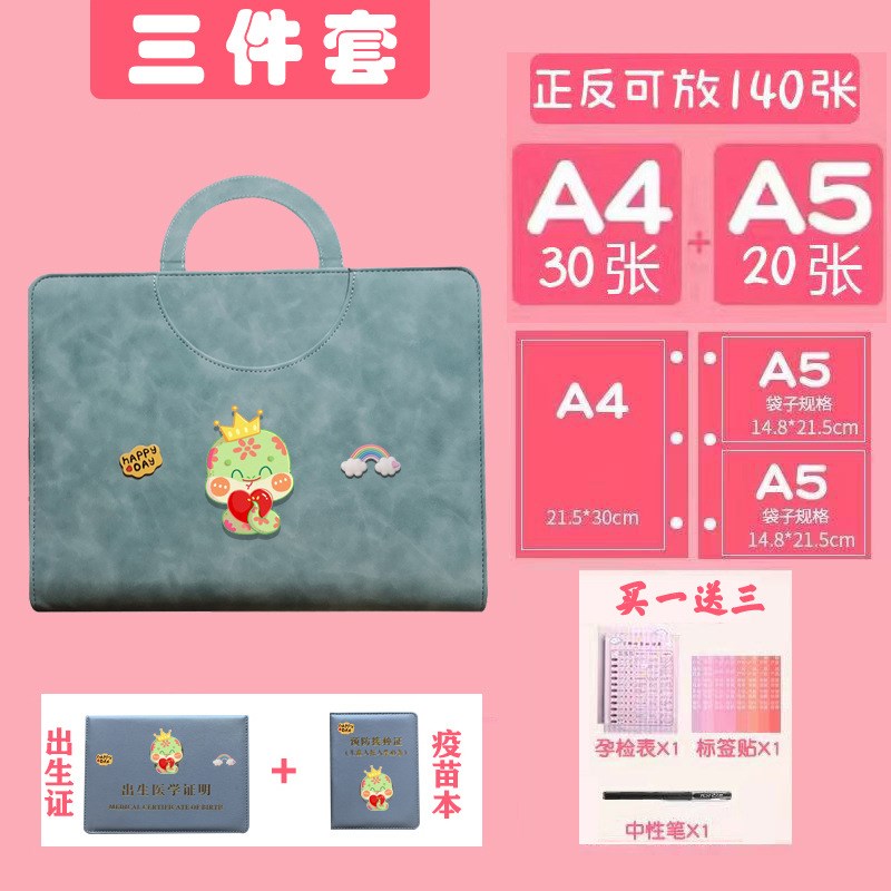 可爱蛇宝宝孕检收纳册45活页手提产检超资料袋孕妇检查收集册