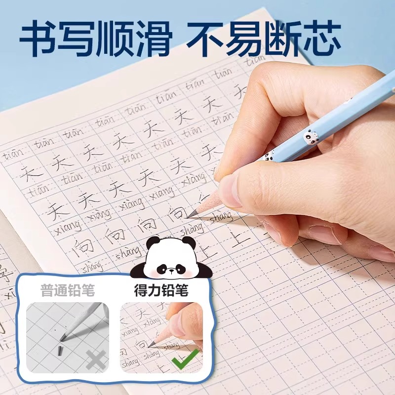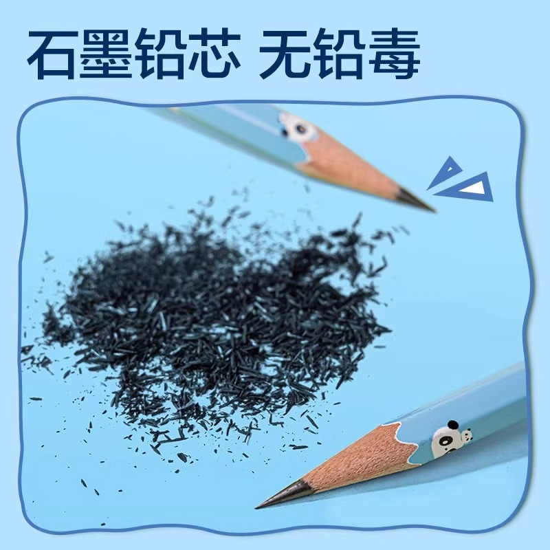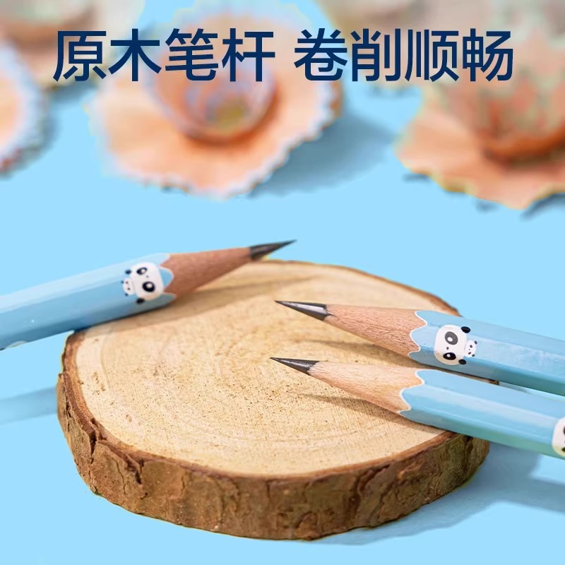 得力熊猫系列书写铅笔学生专用六角笔杆铅笔2B/HB优质铅芯考试儿童初学者练字无刺激气味铅笔
