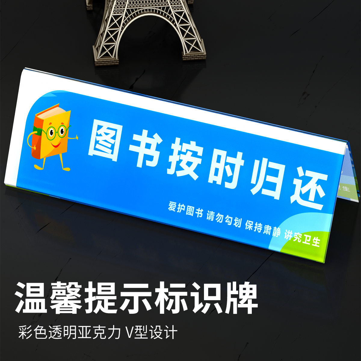 借书请登记亚克力V型双面图书按时归还温馨提示桌牌摆台爱护书本标识牌
