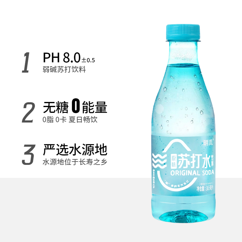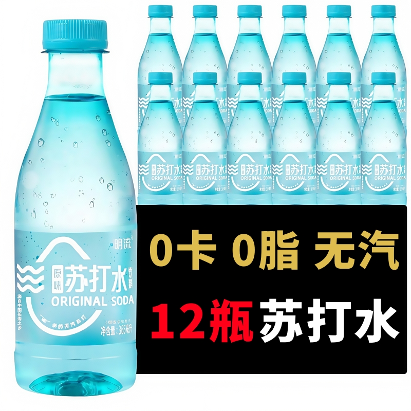 苏打水饮料365ml无糖无汽弱碱性原味明流夏季饮品整箱批发碱性水