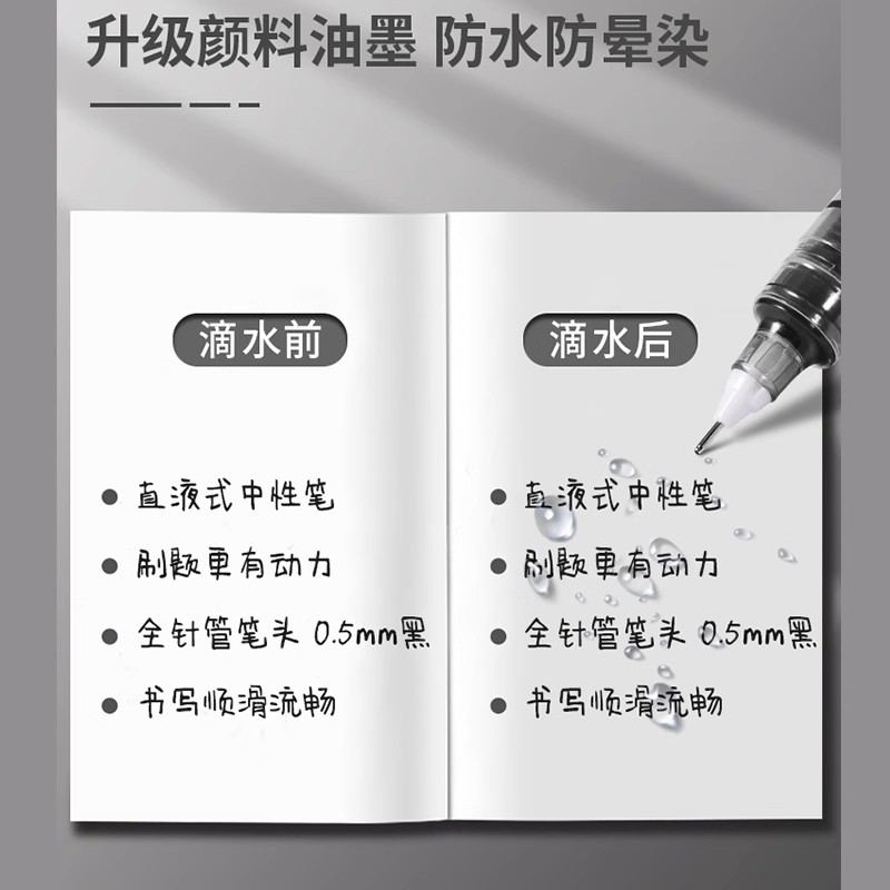 直液式速干黑色中性笔直液笔刷题笔学生专用走珠笔蓝红笔0.5初中圆珠笔针管笔大容量考试写字笔碳素顺滑老师