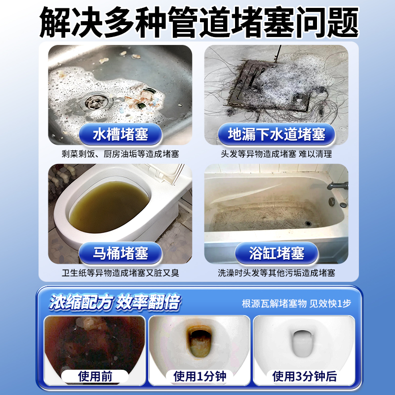 管道疏通剂强力厨房下水道油污地漏厕所马桶清洁堵塞专用溶解神器