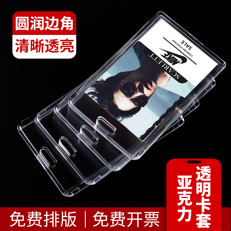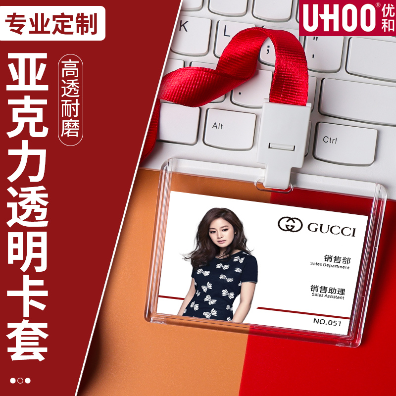 优和水晶亚克力证件卡套透明胸卡工作卡套带挂绳员工证件门禁工牌学生双面透明卡套员工工牌定制证件卡套