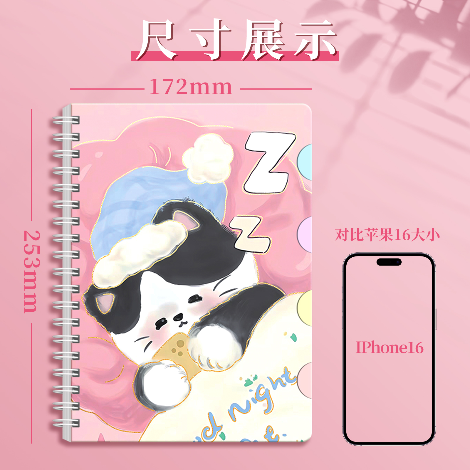 四方伙伴B5分栏线圈本可爱多分类线圈本横线笔记本子小清新大学生男女记事本ins风加厚大号外壳记录本